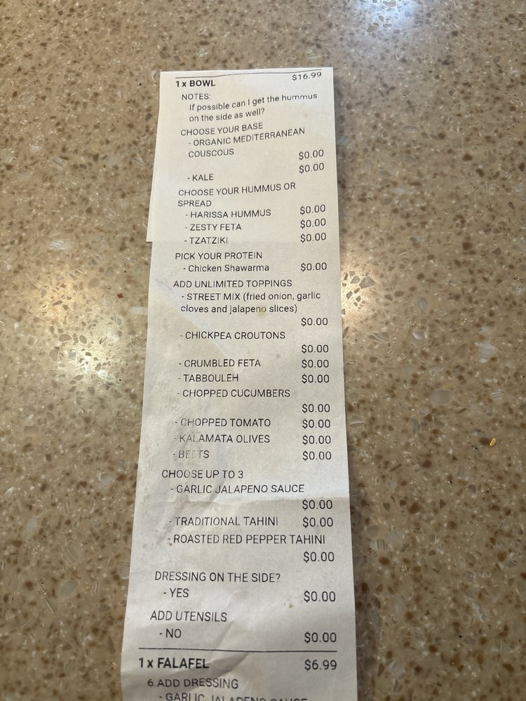 Highlights include the flavorful Mediterranean Wrap, where your choice of toppings and hummus harmonize to create an unforgettable bite. Don’t miss the Tahini Shake, a creamy concoction that is both refreshing and indulgent at $8.50. For dessert, the Blondie is a must-try, combining rich butterscotch flavors with chocolate chunks.